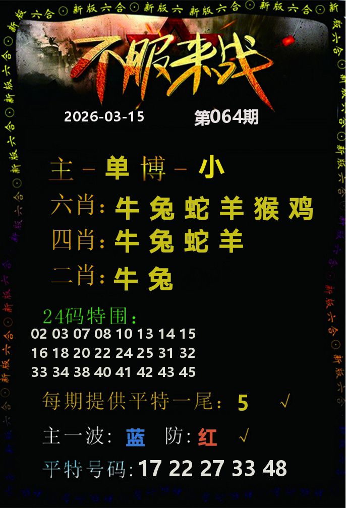 063期:绝杀三肖【兔牛鸡】开:蛇38准